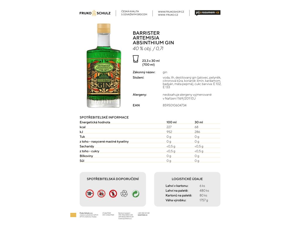 BARRISTER Artemisia absinthium 40% – 0,7 l