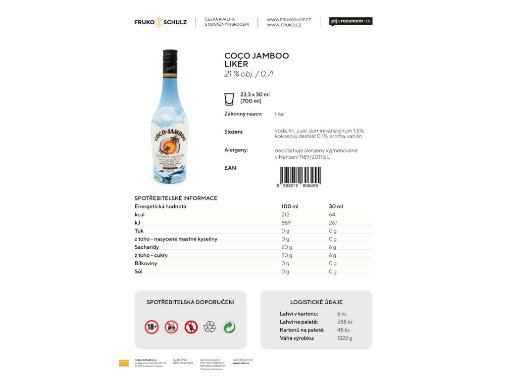 Likér Coco Jamboo obsahuje 96,46 % Kokosového likéru a 3,54 % Dominikánského rumu. Je držitelem stříbrné medaile konkurzu The Liqueur Masters 2015 v kategorii Coconut Liqueurs!
