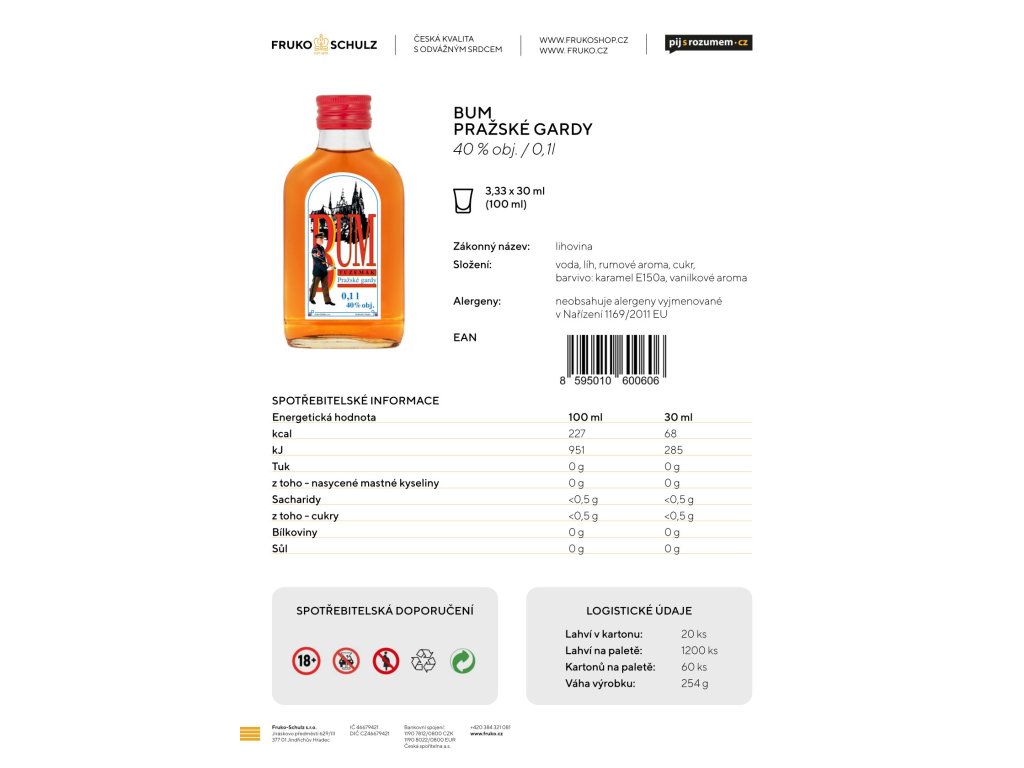 FRUKO SCHULZ Tuzemák Bum Pražské gardy 40% – 0,1 l (placatka)