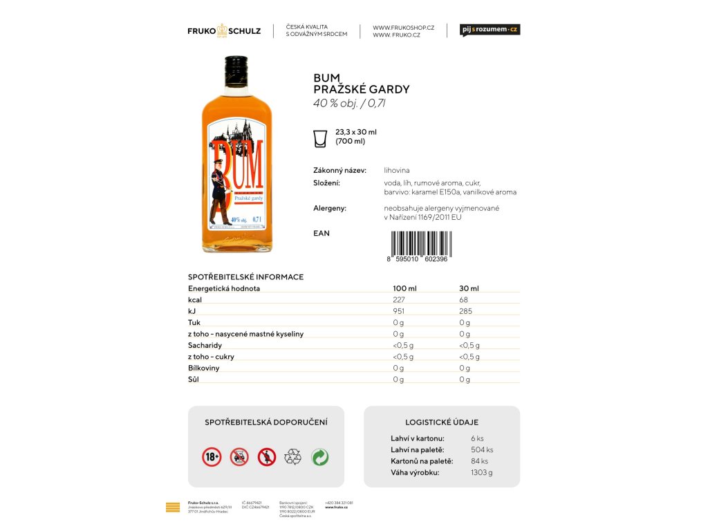 Složení: | voda, líh,rumové aroma, vanilkové aroma, cukr, barvivo: karamel E150a |